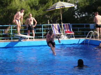 Qui invece giravo una pubblicità x la Nike Air nella piscina dell’albergo ad Ascoli Piceno durante un altro raduno d motorari marsi!!