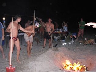 Grigliata in spiaggia, un fuoco che arde tutta la notte per creare