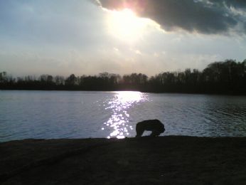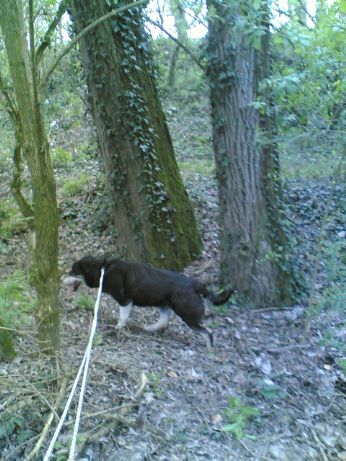,,,allora via per fitti boski, altissimi alberi ke le loro fronde accarezzano il cielo, la terra e l acqua,,,guidati, anke se sarebbe più opportuno dire: tirati,,,da una cagnetta ke fiuta qualsiasi cosa, ke ogni 20 metri lascia il suo segno, per dire a ki della sua razza, sono passata di qui, questa è la mia pista,,,