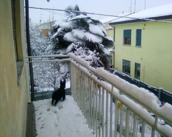 Ho mandato giù in girdino il cane, ed è tornata su bianca. Lho messa davanti al termo sopra unasciugamano per sciogliere i pezzi di neve incastrati tra il pelo.