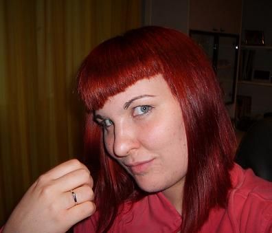 Poi procede al taglio e ho cambiato colore nuovamente... sempre rosso, sempre fuori di testa, ma un po’ più scuro dell’altra volta...un misto tra il rosso e il viola quasi... molto belli, che dite???