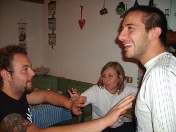 Alcuni discutono e altri semplicemente ballano ubriachi... Soprattutto dopo le 2 bottiglie di grappa che non ho neanche fatto in tempo ad aprire che già erano sparite...