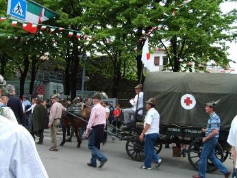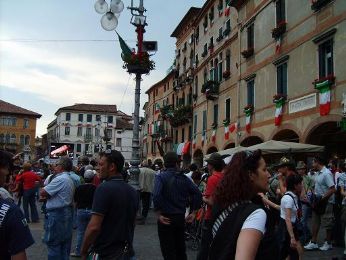 Bassano è tutta tricolore, piena di bandiere dellItalia, i negozi zeppi di gadget di tutti i tipi riguardanti il corpo degli alpini...