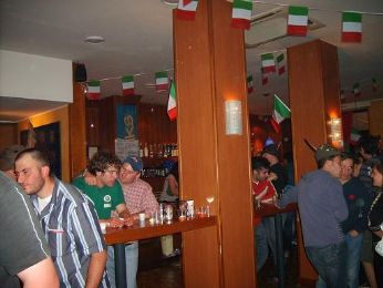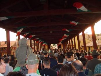 A questo punto già 2 mezzi (di nardini) e 2 rossi erano nel sangue… Ci avviamo verso la piazza, tutta piena di tricolori. Altro vino da Leone…