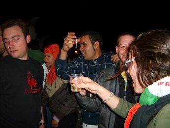 Dopodichè inizia la Vera FESTA DEGLI ALPINI…. Dopo la pioggia la gente sfolla un po’, restano gli irriducibili, i Bassanesi e gli alpini troppo ubriachi per rendersi conto di dov’erano…. Qui è iniziato tutto….. Riparati dalla frescura da Mionetto che offriva spritz e vino a metà prezzo e una colonna sonora di tutto rispetto: tra maledetta primavera, perdono, grande grande grande ecc…. tutti cantavano come pazzi e l’alcol scorreva a fiumi…