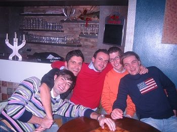 ...da notare in questa foto la mano sx del ragazzo con il maglione rosso, cioè Luca...che si posa leggiadramente sul collo dell’ultimo ragazzo alla vostra destra, cioè Fiorin...