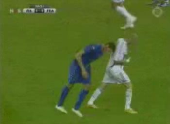 E adesso veniamo all’altro santo, Zizou. Di lui non sono riuscito a trovare video esaustivi, ma posso ricordare a tutti che nel 1998 in occasione del primo turno dei Mondiali di Francia, durante la partita contro l’Arabia saudita fu espulso per aver scalciato al 70’ il capitano Fuad Amin. Due giornate di squalifiche e rientro in campo proprio nella finale contro il Brasile, con doppietta di Zizou. Due anni dopo, nel settembre 2000 Zidane venne messo fuori nella gara di Champions League tra la Juventus e il Deportivo La Coruna, ma il peggio avvenne in ottobre contro l’Amburgo per una testata a Jochen Kientz nel corso di uno scontro in campo. Cinque giornate di squalifica. Un episodio simile gli è capitato anche quest’anno, in marzo, al Real Madrid.