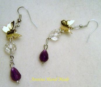 Farfalline dorate, quarzi bianchi e ametiste.