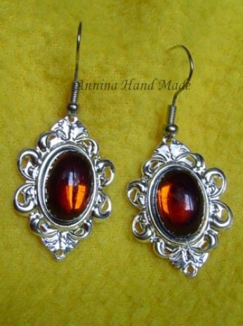 Orecchini con corona argentata e cabochon ambrato grandi circa 3 cm