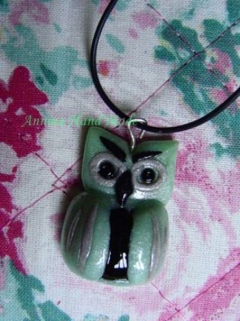 Collana con gufetto lavorato a mano, cordoncino nero regolabile
