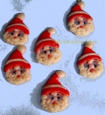 Beh ormai avete capito che sono in ritardo con i gingillini natalizi ^_^ ma rimedierò a breve, ho già in mente qualcosa... E intanto queste sono creazioni dello scorso anno: Bottoni a forma di Babbo Natale e sempre Babbo Natale applicato su una di quelle mollettine per attaccare il biglietto al pacco (tanto per ribadire che vi applico le creazioni come volete)..rigorosamente lavorati a mano (e, incrociando le dita, il tutorial di questi bottoncini dovrebbe uscire su una rivista di artigianato )