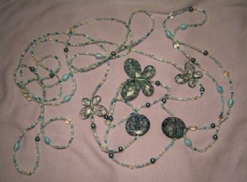 Per farla breve ne ho ricavato due collane lunghe lunghe e un braccialetto, che in realtà può essere usato come collana corta (cè filo elastico allinterno)