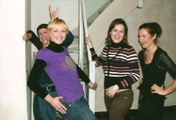 da sinistra dietro di me (quella che mi fà le corna) c’è ketty che purtroppo abita inAmerica,poi ci sono io,la mitica chiara, detta pakyche è la mia confidente ufficiale ed infine dayana la neo mammina!!!!!che in questa foto non era ancora in dolce attesa la manu stava facendo la fotografia.