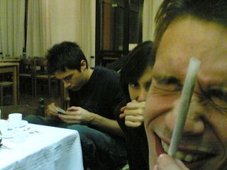 Seratona sui colli ieri..Ai 4 venti..eravamo solo noi 17(che sfiga) amici e nessun altro sembrava di essere nella favola di hansen e gretel..è finita come al solito..ci siamo tirati dietro tutto..abbiamo cominciato con i grissini per passare al pane,alle patate fritte,costicine,bistecche,forchette...un macello e nonostate tutto i padroni ci hanno detto che non siamo neanche stati i peggiori che gli fossero capitati..