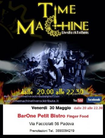 Vi posto la locandina dei Time machine con indicatoi il nostro prossimo appuntamento che si terrà venerdì 30 maggio al Bar One.