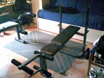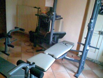 Le mie due panche aperte simultaneamente e qualche tonnellata di pesi....