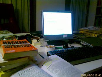 Sto preparando la lezione di sabato mattina (cioè di ieri) al Master: cinque, dicesi cinque, ore di speech per poi correre in CRI ad imparare... "ed anchora imparo". Prego notare il livello di tabagismo cronico. Poveri noi.