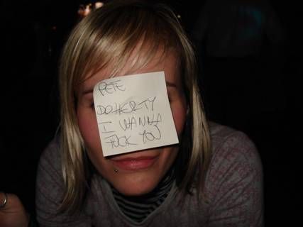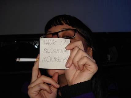 martedì 27 marzo 2007 - ore 09:55 REQUIEM Prima o poi mi sparerai alle spalle, Angie ![]() Credi in ciò che fai Senza lacrime mi distruggerai Laverai le tue mani rosse, Angie ![]() Scuro più che mai Senza lacrime ti addormenterai Come mai, che ne sai, semmai, Rido in lei semmai Nei tuoi nei io mai DIO E’ GAY Lunedì è il giorno delle streghe, Angie ![]() Sai come si fa Senza lacrime, mi distruggerai Ora mai, che ne sai, semmai Rido in lei semmai ![]() Nei tuoi nei io mai ![]() DIO E’ GAY LEGGI I COMMENTI (37) - PERMALINK lunedì 19 marzo 2007 - ore 12:21 tipo che in questo momento mi farei cani e porci! iniziamo con appuntamento a casa di sberry per un pò di foto a caso giusto per saziare il nostro narcisismo illimitato. proseguiamo in quel di gasoline city dove tutti i tuoi sogni divengono realtà. OWWWWWIAMENTE il rito prevede un panino con cipolla slalom a testa. ebe senza peperoni carmille senza peperoni e pomodoro. 2 birre bionde. 4 anime nere. nulla. 2 tequila sale e limone. nulla. in mezzo 5-10 cicche. nulla. non va bene perchè non possiamo fotterci 100000 mila euro per sbronzarci massima di carmille: ENZIMATICAMENTE parlando le donne reggono meno l’alcol degli uomini. quindi 1 spritz uomo= 4 spritz donna....fate i vostri conti! ancora nulla. arrivano ali ale e gente a caso. avviso la pulc che non si può andare avanti così ma lei mi dice:" non ti preoccupare la tequila ha effetti tardivi e a lungo termine". ok quindi la ebe propone di verificare con un’altra teqhila. metto il sale sull’avan-pollice quando sul più bello rovescio i 3 preziosi euro di bevanda sulla gonna con tull bianco. disperazione accompagnata da delirio. devo asciugarmi quindi mi strizzo un pò. la rada guarda e sogghigna. altri a caso mi guardano con misericordia. ok allora vado in bagno con la donna che amo e scopriamo tra un eresia e altro che non cè l’asciugatutto a vapore. mi dicono:" meglio puzzare di tequila che di altre cose oscene". mi consigliano:" trova un fumagalli vortice". però ho ancora quella lurida tequila sul groppone...missione numero 1 pregare in ginocchio e offrire prestazione di ogni genere e tipo al cameriere purchè mi offra una maledettissima tequila! risposta. NO. ok allora provo accompagnata dalla pulc a provarci col capo. ci appendiamo alle sue palle a mò di koala per 10 minuti e alla fine devastato da due sanguisughe come noi ci manda a farci fottere a caso e ci offre 2 tequile... owwwiamente faccio metà con la donna che amo che pensavo di aver perso dato che si trovava a parlare con gente di cui sono gelosa! poi quando usciamo io e la pulc ci troviamo costrette dalla ebe e altri a caso a dover fingere di fare un pò di pipì insieme. ![]() ok andiamo al banale. guida in stato d’ebrezza con donna che amo ovvero sempre la ebe al mio fianco che delirante canta o meglio grida a caso canzoni degli 883... cazzo però è mancata la brittany !al banale troviamo ben altro che ci fa arrivare quasi al capolinea. mi vedo quasi costretta a sferrare un gancio o un montante a scelta in bocca a un tipo a caso perchè continuava a molestare la donna che amo=EBE. tra zerbini e takenti continua la cosa. nel mentre guido per tornare a casa la ebe mi dice che sono appena tornato a casa vieni? e mi vedo costretta a fermarmi sul ciglio della strada per non implodere dallo sconforto...lei ride perchè si è resa conto della cazzata ma in verità imploderebbe pure lei ripensandoci... a casa della moglie si fa merendina con biscotti kinder bueno e altre robe.... anche la tisana ma non mi ricordo il gusto...MAH... sabato mattina mi sveglio con un attacco di gastrite acuta.... ho finito le bustine di antiacido. vorrei morire. allora l’unica soluzione è farmi di maloox plus sperando che 3 pastiglie alla volta abbiano l’effetto di una sola bustina.... ci aggiungo 2-3 compresse di peridon e infatti appena arriva la ebez sono nuova! owwwiamente la donna che amo e non la amo a caso ![]() infatti porta un pò di birre e presto ci dirigiamo in quel della piazza... confermo che maloox plus + peridon+ birra e altro = gastrite fottiti! infatti se n’è andata!!!! ho brevettato un nuovo farmaco antiacido!!! naturalmente scatta il delirio anche in piazza il tutto accompagnato da incontri di gente varia daini, motocilisti systematici e darkeviliani e fotografi a caso e sempre altro. pizza dall’amico di ebe (quindi sono gelosa) rami che owwwiamente prepara le nostre pizze prima di tutte le altre ordinazioni... ancora gasoline e poi NEW AGE!!!! e come sempre direi DELIRIO!! rituali foto della serata...] ![]() ![]() LEGGI I COMMENTI (29) - PERMALINK venerdì 9 marzo 2007 - ore 13:08 MIND THE GAP! ahahahahahahah! ebbene cawi signori e signorine le due lese a ciodo sono ritornate in quel di padova per narrarvi le loro fantastiche avventure nella lontana terra inglese! non sapendo da dove incominciare vi propongo un pò di foto a caso... diciamo che l’ordine delle robe e cose e degli eventi si è smarrito nei meandri del mio atomico brain...quindi dato che per recuperlarle dovrei stare in meditazione ore e giorni... beccatevi queste! giusto per risparmiare le forze... mi avvantaggio! ![]() ahahah ecco a voi il delirio fremens o da me battezzato delirio luminescens (tanto perchè sono scienziata ahahahaha) ![]() e owwwwiamente ecco dove siamo state per 2 giorni e mezzo di puro skizzato lesionante shopping! ![]() con vomito annesso e connesso.... ![]() della serie AIUTATEMI!!! ![]() con ali like ebe annesse e connesse ![]() e owwwwiamente loro le sole le uniche inimitabili: ![]() (notare lo sguardo pseudo comatoso- a tratti delirante) notare che le avevamo usate fino a 5 minuti prima per camminare in stanza...e ora giusto sulla bocca ![]() robe e cose a caso... ![]() ![]() la mia collega franz che lavora in quel di london da circa 3 mesi... la devastazione al burger king ![]() AIUTATELA!!!! ![]() la mostra di chitarre da HARRODS ![]() e solo e sempre lui... ![]() magicamente impegnata a fare alt