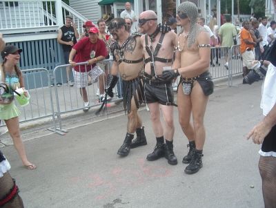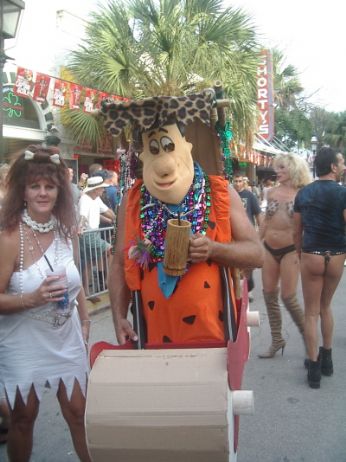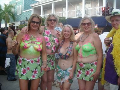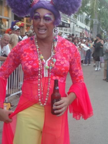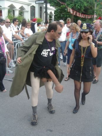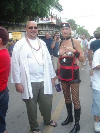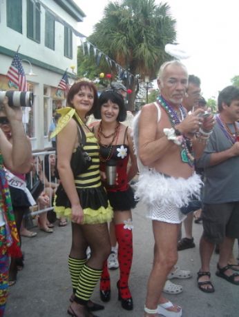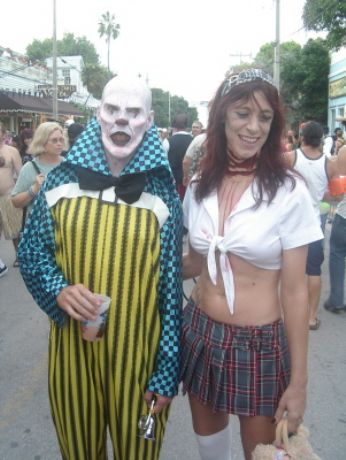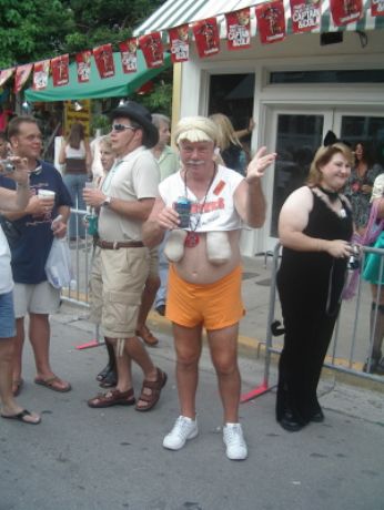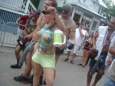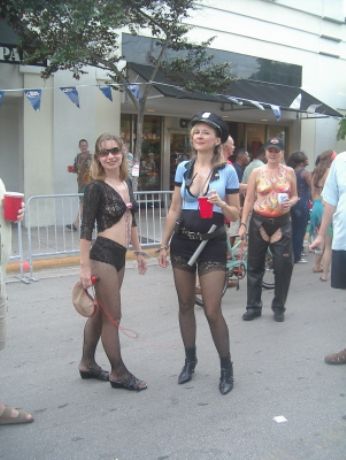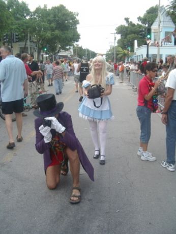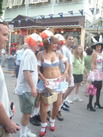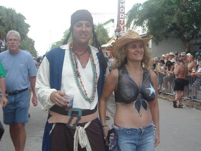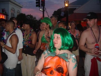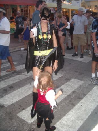 Il Fantasy Fest si e’ concluso domenica scorsa pero’ scusatemi le foto da ridimensionare erano parecchie (e comunque ne pubblico solo una parte) e poi c’e’ pure stato il lavoro di mezzo, l’asilo nuovo per Emma ed Halloween ...si insomma...un sacco di cose...ma bando alle ciance e cominciamo dall’inizio. Come spiegare il FANTASY FEST in poche parole...diciamo che e’ un mix tra il carnevale di Rio e il carnevale Italiano (per adulti) . Si tratta di 10 giorni consecutivi di festona che coinvolge tutta l’isola...ma soprattutto Duval Street e i suoi locali. Tengo a precisare che l’isola si riempe di migliaia e migliaia di turisti che vengono appositamente per questo Festival. Si e’ iniziato il 19 ottobre nel quartiere di Bahama Village con stands di cibo e souvenirs delle isole caraibiche...per poi proseguire con: Lunedi’ sera festa leather-fetish in uno dei tanti locali drag della via. Martedi’ con The green party tenuto in uno degli Irish Pub..non occorre che precisi che ci si doveva vestire di verde. Si e’ proseguiti Mercoledi’ con The red party dove ci si vestiva di rosso. Giovedi’ sera Toga party al mitico Sloppy Joe’s. Venerdi’ sera parata mascherata lungo Duval Street (chiusa al traffico per l’occasione) e Sabato sera parata mascherata con tanto di carri mascherati (a centinaia)!!! Il tutto condito, ovviamente, da altre feste parallele tipo...Wet t-shirt competition, Pet parade, drag race, best home made bikini etc etc.... Per dettagliate informazioni si puo’ sempre visitare il sito www.fantasyfest.net Abbiamo partecipato attivamente anche noi alla Parade e io, da brava Italiana, ho portato pure Emma...vestita da pirata!!! OOhh..c’ha avuto un successone la bimba...ogni due metri veniva fermata perche’ le volevano fare una foto!!! Basta con le parole...passiamo alle foto