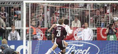Ancelotti conferma la formazione ipotizzata alla vigilia, con Inzaghi unica punta supportato da Kakà e Seedorf. Hitzfeld deve rinunciare a Schweinsteiger, e schiera un centrocampo inedito con Ottl e Lell sui lati. Makaay e Podolski la coppia dattacco. Gara fin da subito piacevole; al 7 su cross di Van Bommel Lell scavalca Dida con una sponda aerea, e Oddo libera larea a pochi metri dalla linea di porta. Sullaltro fronte deliziosa palla dentro di Maldini per Inzaghi, che sbaglia lo stop quando potrebbe presentarsi a tu per tu con Kahn. Gli ricapiterà.
