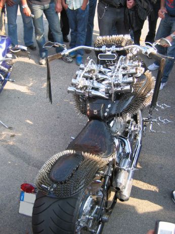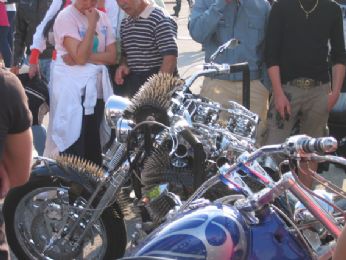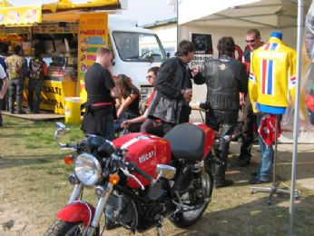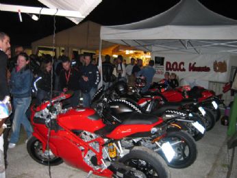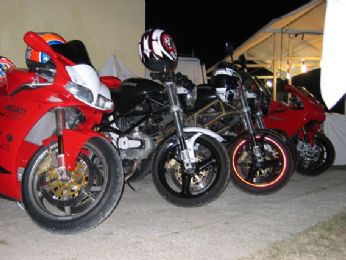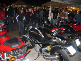 Andai su il venerdì sera con una mia amica ... linizio fu esaltante da subito ... avendo appuntamento al raduno con il Boss e Guzzone, andammo direttamente lì. Il gatto e la volpe, (Boss e Guzzone appunto), erano ancora in giro a comprare ossocollo e damigiane di vino per il giorno dopo, era già ora di cena, quindi spuntino al raduno, paninozzo stile "Gino Panino", con salsiccia formaggio e cipolla in abbondanza, questepisodio lo ricordo perhè mangiando il paninozzo e tracannando la birra, conobbi un tipo simpaticissimo, padre di famiglia, Ducatista, biker, era lì con la sua Harley e il semplice fatto di essere entrambi motociclisti ci rendeva già "amici" in qualche modo. Laria che si respirava era veramente particolare, avvolgente, mi colpì molto, mi sentivo parte di qualcosa, non avevo mai provato qualcosa di simile e ancora oggi lo ricordo con affetto.