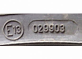 L’omologazione consiste nella apposizione su uno dei due fianchi della marcatura composta da una lettera "E" maiuscola in un cerchio o “e” minuscola in un rettangolo seguita da un numero identificativo del Paese che rilascia l’omologazione. Tale marcatura, sempre in rilievo, deve obbligatoriamente essere seguita da un numero generalmente composto da sei cifre.