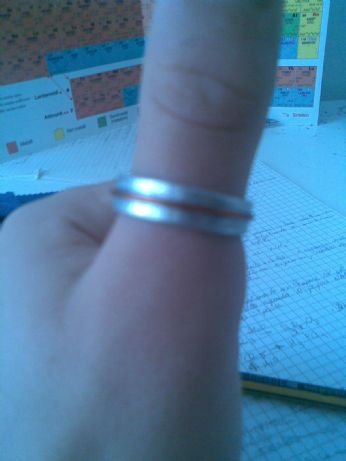 e lui invece è l’anello che mi son fatto,battendo assieme uno dei miei elementi preferiti, alluminio, e un filo di rame