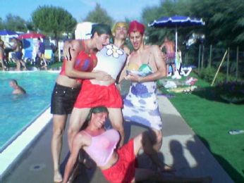 qui siamo io e altri tre amici,ttravestiti da donna per la gara di miss maglietta bagnata al campeggio..
