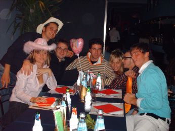 Allora.. non saprei come cominciare a descrivervi questa festa.. Tutto bellissimo, come sempre del resto. Serata iniziata in bar dalla Dada, aperitivi a go go, arriva il funkybus, saliamo e ci dirigiamo al padrò dove ci aspettavano gli altri (peccato che non ci fosse Elia) e poi.. Dritti verso il Funkytown! Aperitivi anche li.. (quelli lasciavano un pò a desiderare come grado alcolico.. Ma forse è perchè siamo noi abituati troppo bene) e poi cena!
