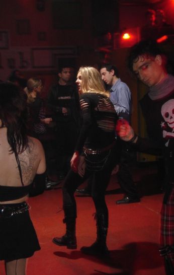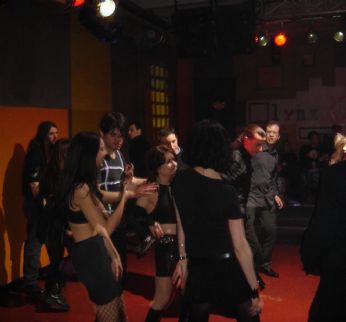 Ma veniamo al vinile...era tutto buio, o quasi, l’idea era quella della serata tra le tenebre,in verità volevano risparmiare sulla bolletta, cagnitudo abbundabis notevolmente, c’erano quelle vestite o svestite in pvc che bastava un mozzicone per bruciarle chi quelle vestite di bianco immacolato e mezze nude ma conqualche precedente penale per spaccio, le grandi dame erano presenti con accanto mostri disumani . Naturalmente e qui la cosa mi ha fatto un po ridere c’era l’angolo di depressolandia, ossia siamo dark e dobbiamo restare rinchiusi nehl ghetto dei nostri ideali ( altra grande citazione P.O.C) e rimanere seduti all’ombra a piangerci addosso e riflettendo sui mali della vita e in generale troiate totali simili, quanta carne sperecata!! Ma la cosa peggiore erano quei fastidiosi braccialetti fluorescenti che davano all’ingresso con all’interno sangue di Predator per vedere al buioe garantire la nostra sicurezza ma andate in mona se non mi dite quando comincia non posso mica improvvisarmi!!!