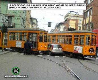 ...e poi dicono che i milanesi non amano andare sui mezzi pubblici; questo ha preso due tram in un colpo solo!