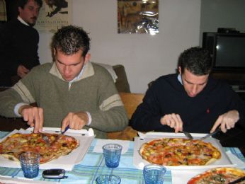 intenti a mangiare la pizza... vale e riccardo.