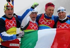 Valbusa, Di Centa, Piller Cottrer e Zorzi trionfano nella 4x10 km. precedendo Germania e Svezia. E il terzo successo dellItalia in questa edizione dei Giochi