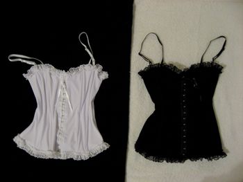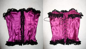 d’accordo ... la devo smettere ... mi rendo conto che sto esagerando ... ma non è colpa mia! quest’anno si trovano praticamente ovunque!!! ebbene sì! ne ho preso un’altro!! ma era cariiiinoooo! e soprattutto non nero! ho resistito alle tentazione del nero (ne ho un armadio pieno di corsetti e bustini neri ) per un bel viola! il "problema" è che non è di quelli morbidi ... ma semi-rigido ... ancora niente stecche di acciaio flessibile, ma il fiato lo toglie e per metterlo c’era la tipa del negozio che stava per piantarmi un piede a metà schiena per stringere bene con Adara che si faceva le matte risate rievocando scene di Via col Vento mentre io venivo minacciata di "non respirare!!non ridere!!!" perchè sennò non riusciva a fissarlo alla misura giusta