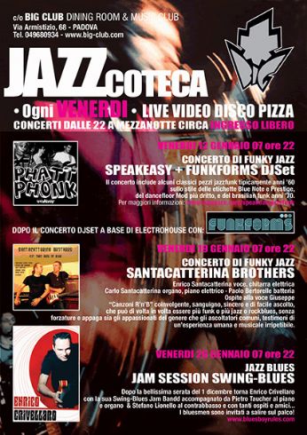 sabato 20 gennaio 2007 - ore 16:31 GODS OF METAL 2007 ![]() SABATO 3 GIUGNO 2007 DREAM THEATER headliners al GODS OF METAL Milano Idroscalo LEGGI I COMMENTI (1) - PERMALINK venerdì 19 gennaio 2007 - ore 21:08 STASERA AL BIG CLUB Santacaterina Brothers La caratteristica principale dei fratelli Santacatterina è il loro suono; un suono che si è sviluppato ed evoluto negli anni e che raggiunge il suo apice quando i due suonano insieme. Unaltra caratteristica è quella di individuare i propri "compagni di sventura" scegliendoli di volta in volta proprio per il loro "suono" personale, da fondere ed amalgamare a quello "di famiglia" in funzione del risultato finale che i "Brothers" vogliono ottenere. Ecco perchè a prescindere da chi siano accompagnati si percepisce sempre il forte legame anche umano, oltre che musicale che intercorre tra gli elementi che compongono il gruppo e determinano quindi in particolare "quel suono". Al trio di base, forte della complicità di batteristi come Davide Ragazzoni, Marco Campigotto, Paolo Bertorelle, e recentemente Massimo Tuzza, si aggiungono di volta in volta ospiti e amici, siano cantanti o strumentisti, ma sempre perfettamente amalgamati al suono primitivo del gruppo. Formazione: Enrico Santacatterina – voce, chitarra elettrica Carlo Santacatterina – organo, piano elettrico Paolo Bertorelle – batteria LEGGI I COMMENTI (1) - PERMALINK giovedì 18 gennaio 2007 - ore 16:57 KAWASAKI Z750 Sarà la mia scelta definitiva??? bè...aspetto di vederla di nuovo domenica al Bike Expo ma credo proprio che sceglierò lei...verde Kawasaki diamantato... mi piace veramente tanto... ![]() ![]() ![]() ![]() COMMENTA (0 commenti presenti) - PERMALINK giovedì 18 gennaio 2007 - ore 16:54 BIKE EXPO 2007 VENERDI, SABATO e DOMENICA 19/20/21 GENNAIOFIERA DI PADOVA BIKE EXPO 2007 LE PIU BELLE MOTO DEL MONDO!!!!! IL MIO MONDO!!!! COMMENTA (0 commenti presenti) - PERMALINK domenica 14 gennaio 2007 - ore 15:37 CHI SEI???? HOPERSO IL N° 500...chi sarà mai???? COMMENTA (0 commenti presenti) - PERMALINK venerdì 12 gennaio 2007 - ore 20:45 CONCERTO SPEAKEASY Oggi ore 22 BIG Club SPEAKEASY in concerto Jazz/Funk LEGGI I COMMENTI (1) - PERMALINK giovedì 11 gennaio 2007 - ore 19:06 Vespa!!! ...a questo punto credo sia palese che voglio una Vespa!!! ...pensavo a uno di questi modelli: - 125 Super 1965 - 125 GTR 1969 - 125 TS 1975 - 125 Primavera 1976 però pensavo anche a: - 150 GS 1963 - 180 SS 1965 - 180 Rally 1968 - 150 Sprint Veloce 1969 Voi cosa dite??? ![]() ![]() ![]() ![]() ![]() ![]() ![]() LEGGI I COMMENTI (1) - PERMALINK giovedì 11 gennaio 2007 - ore 18:45 ...ma che bella giornata.... COMMENTA (0 commenti presenti) - PERMALINK mercoledì 10 gennaio 2007 - ore 18:56 COMMENTA (0 commenti presenti) - PERMALINK mercoledì 10 gennaio 2007 - ore 18:04 sPeAkEaSy SPEAKESY IN CONCERTO......Venerdì 12 Gennaio....ore22 ...BIGClub via Armistizio -Pd- LEGGI I COMMENTI (1) - PERMALINK > > > MESSAGGI PRECEDENTI |