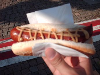 Spuntino a base di korv (si trova ovunque) magari come questo di alce