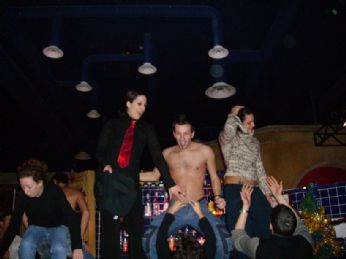 Oh pianta che provieni dall’Oriente... dai ci siamo quasi a sto 2006. Sono le 4 e mezza, io sono ancora a letto (ma chi non ama le feste Natalizie è un pazzo) e non ho proprio voglia di alzarmi. Zero zero. Vabbè! COME SONO ANDATE STE FESTICCIUOLE? Ma care bene. Si è cominciato il venerdì con il primo raduno del club delle Kinderfike al Banale. Io, Zietta, Moretta e Lisa (mancava Luna8 perché la febbre non le dà mai tregua) ci siamo trovate con i nostri "discepoli" nella splendida cornice del mio locale preferito... Dopo essermi rammaricata per aver visto una persona addormentarsi sulle sedie ubriaco marcio e venir deriso pubblicamente ed aver avuto conferma che da spolpi anche un cesso diventa appetibile sessualmente, ci siamo consolate in altro modo. Tutte abbiamo seguito il motto del club "LIMONIAMO DURO! LIMONIAMO TUTTI!" e tre di noi hanno pure ricevuto degli auguri di Natale DECISAMENTE particolari... chissà chi???? Il resto dei giorni poi è volato tra cene, pranzi e liti solite. Finalmente però sono qui con il mio Buio che mi fa le fusa sulle tette (ragazzi lui sì che è un buongustaio), davanti al computer indecisa sul da farsi... pulisco il bagno o mi metto a stirare? Mah... dubbio amletico. Forse è meglio che faccia colazione!