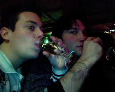 stasera sarebbe dovuta essere una di quelle serate "eccezione", si e festeggiato il compleanno di 2 tra i miei migliori amici, x cui il brindisi ci stava, ma rasi e io, ormai duri come pietre abbiamo cominciato con dell ottima acqua frizzante con limone e successivamente abbiamo brindato ai festeggiati con dell altra ottima acqua frizzante in delicati flute da spumante, ormai non ci ferma piu nessuno!