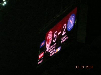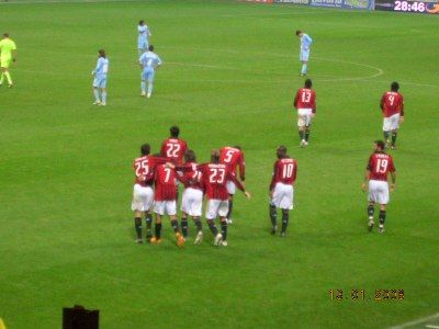 Poi inizia la partita.. cavolo, il ciccione (vedi Ronaldo..) va in gol.. certo, non regge uno scatto, va detto.. ma ha piedi sopraffini e dispensa giocate a iosa.. e il brasiliano dOlanda, Willy Wonka Seedorf, gli regge il gioco e piazza un altro pallino alle spalle di Iezzo.. però il primo tempo ci vede sul 2-2: il napoli colpisce due volte, con lavezzi indemoniato a correre su ogni pallone.. però il 2-1 era più giusto.. Secondo tempo.. nemmeno il tempo di finire il Borghetti dellintervallo, che il ciccione ne fa un altro, su pennellata di.. indovinate???.. Beh, clarenzio, ovviamente!!.. stavolta si va.. il Milan si scioglie.. e Kakà fa 4!!! Una rasoiata delle sue.. Corri, Ricky.. corri dai tifosi!