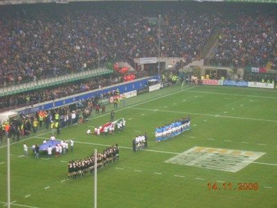 Il posto donore dellaggiornamento del blog non posso non lasciarlo ai grandissimi ragazzi del rugby, che contro gli All blacks hanno giocato una grandissima partita, in cui sono emersi lorgoglio, la voglia di lottare, di superare i propri limiti anche tecnici facendo come Gattuso "METTENDOCI IL CUORE". AMO QUESTO SPORT. Hanno per lunghi tratti costretto i tutti neri nella loro metà campo, meritando forse nel finale una meta tecnica che larbitro non ha concesso, ma che poteva starci. il tutto, nella splendida cornice di un San Siro letteralmente stipato da 85.000 persone entusiaste, calorose, pacificamente assiepate solo per divertirsi, commoventi quando è stato il momento di cantare lInno dItalia insieme a un altro rugbysta che si cimenta da sempre con la lirica: Dallan. E stata la dimostrazione che per fare le grandi nazionali, servono anche i grandi ambienti, come il Croke Park o Lansdowne Road a Dublino, Twickenham a Londra, il vecchio Arms Park o il Millennium di Cardiff, Murrayfield a Edinburgo o lo Stade de France a Parigi. Purtroppo noi abbiamo il Flaminio, a Roma, che con tutta la buona volontà e il calore che può provare a trasmettere, non aiuta a caricare a dovere lambiente. Vedere la palla ovale alzarsi sempre più dopo essere stata calciata verso i pali e dietro un vero e proprio muro umano è un immagine che resterà indelebile nelle menti di chi ha giocato e di chi ha guardato la partita. Grazie ragazzi: ci avete resi orgogliosi! Eccovi qualche foto!