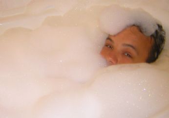 Una vasca da bagno piena di schiuma...con sorpresa!