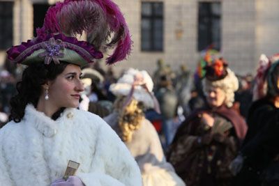 Noi pero’ siamo arrivati per le 14:00, ora di inizio sfilata di bande musicali, gruppi in costume, sbandieratori, personaggi del corteo storico di Venezia.