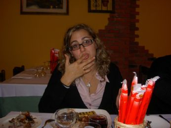 io e UZ! abbiamo fatto a gara a chi insozzava di più il tovagliolo, esponendo le TELE alla fine del luculliano pasto... risulato?!? ha vinto lei, io mi ero pure impegnata, ma devo dire che ho perso con onore, dato che ho macchiato la mia camicetta rosa messa per l’occasione... aspetta..........ho capito perchè ha vinto lei... forse mi ciucciavo un po’ troppo le dita...