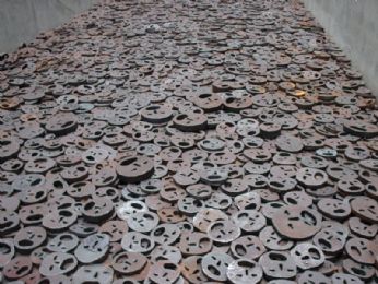 Opera di Kadishman che si trova allinterno del Museo Ebraico a Berlino. L’autore invita a camminare sull’opera e le emozioni richiamate dalla singolare passeggiata sono contraddittorie: i volti metallici grandi e piccini che la compongono, sebbene calpestati con la maggior delicatezza possibile, carezzati in punta di piedi, continuano a crepitare e scricchiolare, come se lanciassero grida impossibili da sopire.