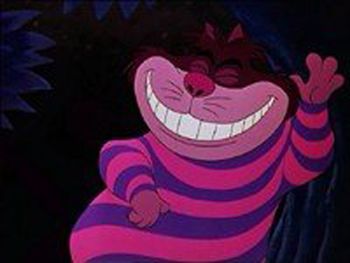 Cheshire Puss (questo il nome originale) è però un vero cabarettista, scherzoso e dallo humor tipicamente anglosassone: quando Alice gli domanda la strada da prendere, egli le risponde ovviamente: "Dipende in genere da dove si vuole andare!". Famosa la versione che ne dà il cartoon della Disney, dove il gatto appare in un’improbabile tigratura viola e rosa, a dimostrare ancora di più il proprio non-sense e originalità.