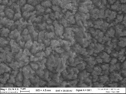 Beh.. stamattina l’ho passata davanti al microscopio a scansione elettronica dell’unife.. Ecco, volevo farvi vedere i nanotubi di biossido di titanio che ho fatto crescere sulla superficie di un elettrodo di titanio metallico per ossidazione controllata :