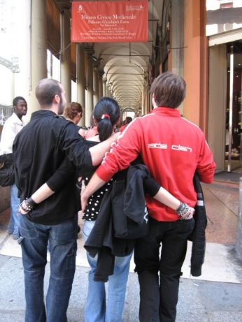 le tre balde donzelle poi decidono di tornare a casa a farsi il pollo in Agrodolce (la Marty è il mio mito.... è riuscita a cucinare un pollo buonissimo anche da mbriaga) e nel tragitto vanno addosso a persone, turisti, studenti, vetrine, chiese..... invano tentano di camminare su una linea retta......