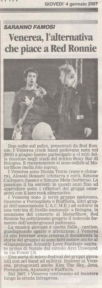 IL MATTINO DI PADOVA giovedì 4 gennaio 2007 - nella foto: mr. jazZBass e Red Ronnie.