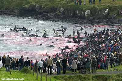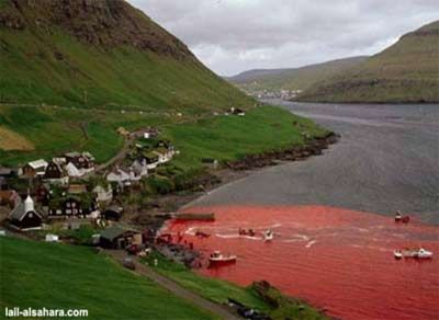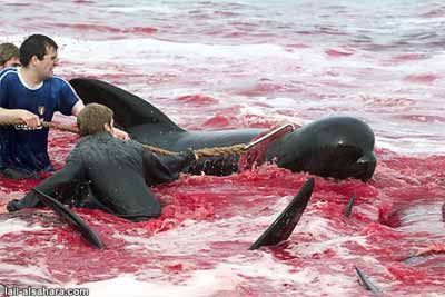 Far Oer (Danimarca) massacro delle balene.. ...un vero bagno di sangue...