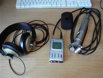 e infine, dopo aver testato decine di prodotti, scritto svariati articoli e girato una pletora di forum, mi sono deciso a farmi un setup per la registrazione audio mobile, quella che nelle colonne sonore viene detta "field recording" (registrazione audio in campo, nella location del film, reale o ipotetica). Il DAT, storicamente la soluzione ideale, personalmente l’ho sempre odiato, per la scarsa flessibilità, e ho optato per un palmare+Compact Flash con ingressi digitali SPDIF, con preampli/convertitore Apogee e microfono stereo Rode NT4